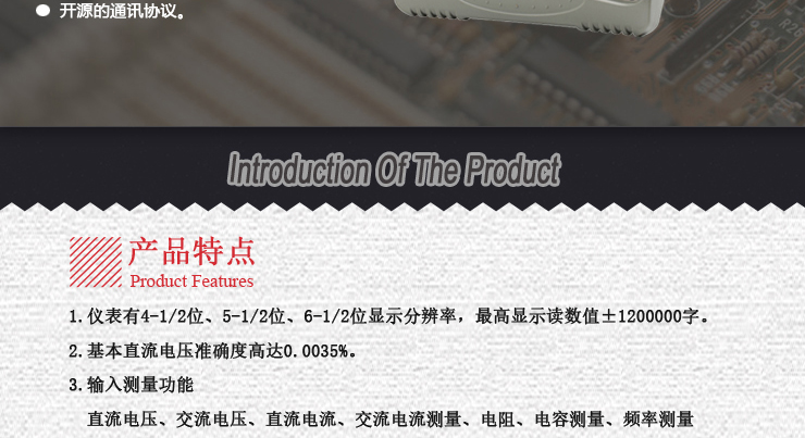 1. 儀表有4-1/2位、5-1/2位、6-1/2位顯示分辨率,最高顯示讀數值±1200000字。
