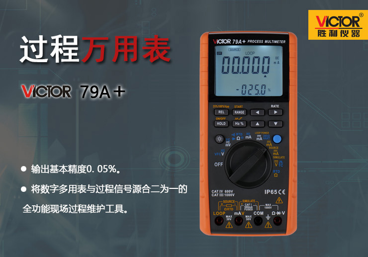 VICTOR 79A+過程萬用表是一款將數字多用表與過程信號源合二為一的現場過程維護工具