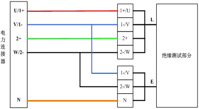 為了實現能夠分別測量AC380(500V)制式和DC600(1000V)制式下的線間、線對地多路的絕緣值;依托我們成熟的絕緣測試部分,增加通道切換功能,連接到客車電力連接器上,一鍵式滿足各種組合的絕緣測試,具體見下圖: