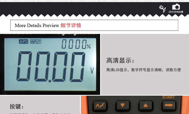 *注:表中范圍為最大范圍,精度為最高精度(讀數的%),分辨力為最高分辨力。 精度=±(%讀數+字)